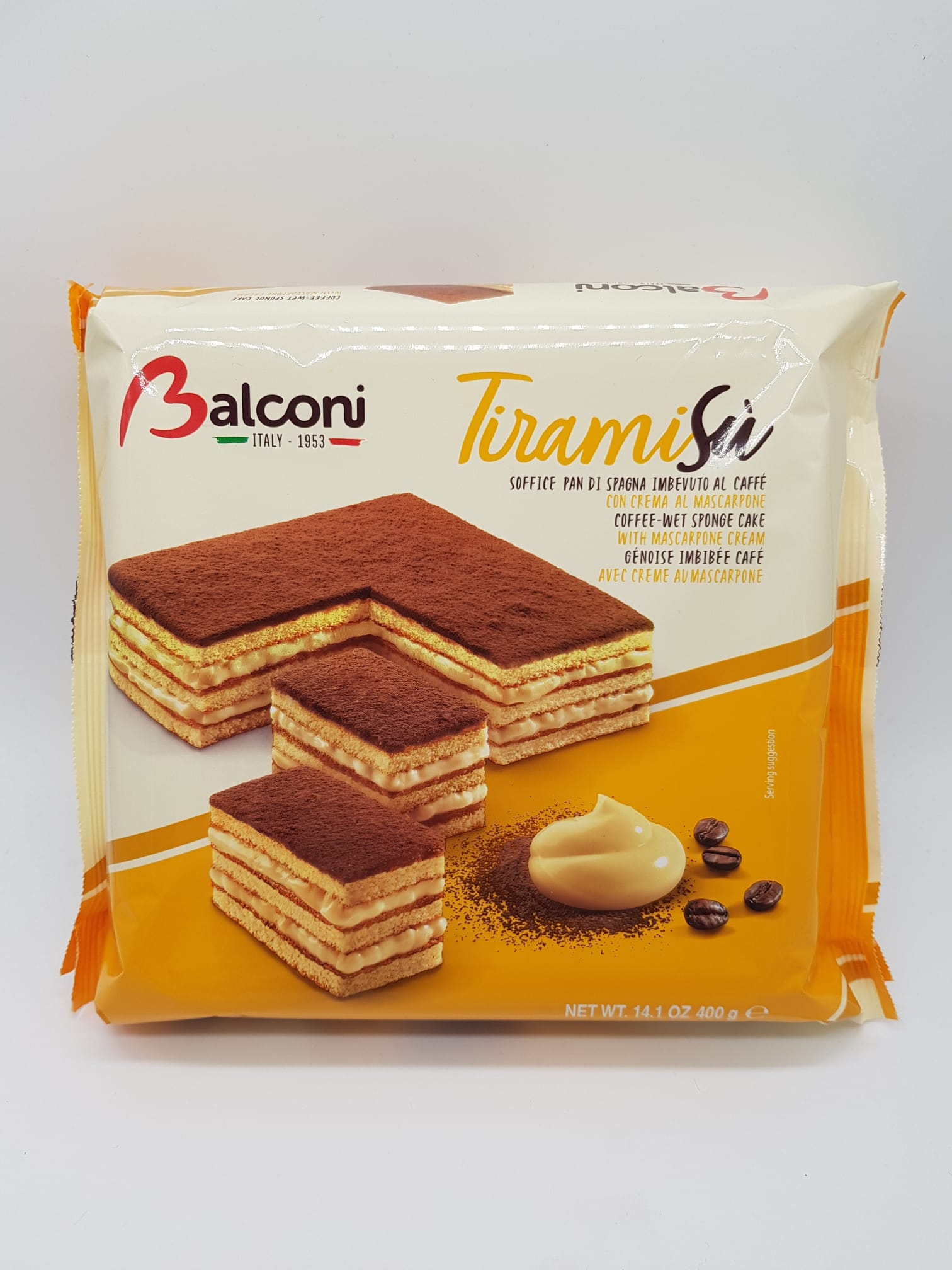 Glucose-Fructose-Sirup; Zucker; Kaffeelikör (Glucose-Fructose-Sirup, flüssiger Kaffee 4,5% auf das Endprodukt, Alkohol, Wasser, Aromen); Frische Eier; Weizenmehl (12%); Pflanzenöle (Kokosnuss, Sonnenblume, Olivenöl in unterschiedlichen Anteilen); Magermilch; Magermilchpulver; Kakaobutter; MASCARPONE (1,7%) (MILCHcreme, Säureregulator: Zitronensäure); Kakao; Milchproteine; Marsala Wein; Emulgatoren: Mono- und Diglyceride von Fettsäuren, SOJA-Lecithin; Triebmittel: Ammoniumcarbonate, Natriumcarbonate, Diphosphate; Aromen; Salz; Stabilisator: Pektin; Traubenzucker; Weizenstärke.