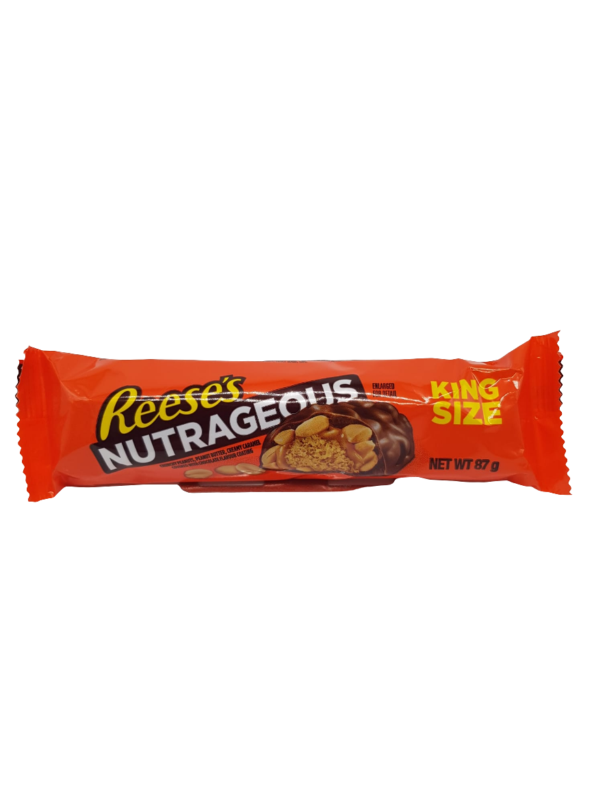 Nutrageous ist der Schokoriegel mit einer Füllung aus Reese's Erdnussbutter, Milchschokolade, Karamell und ganzen Erdnüssen.